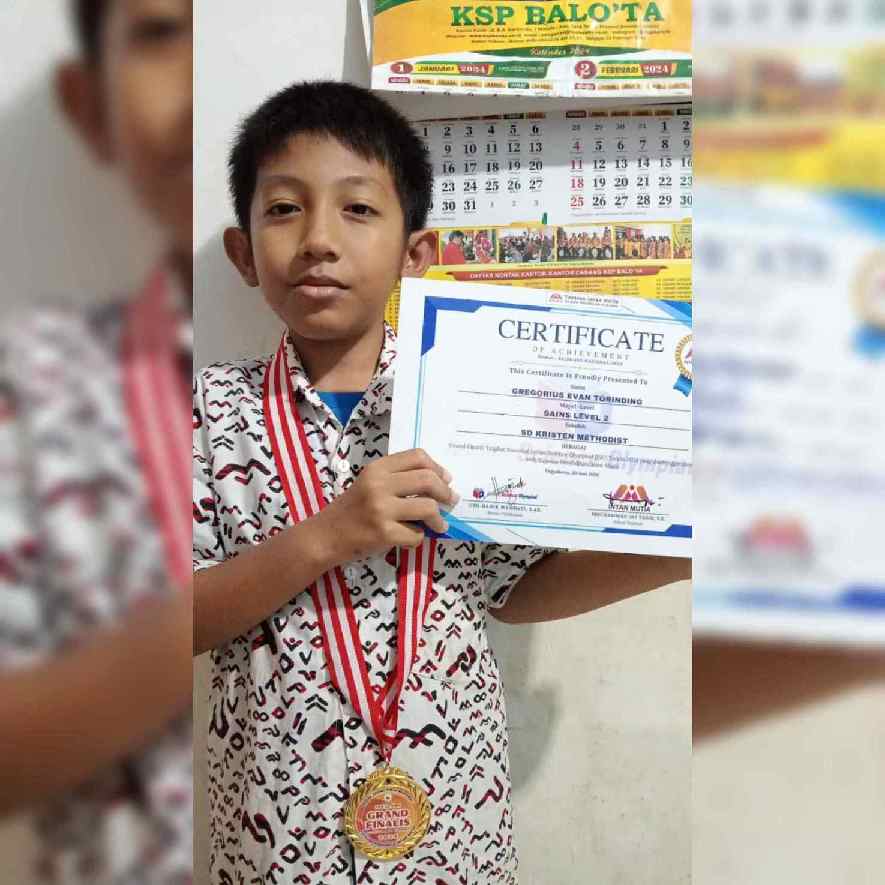 Kompetisi yang diselenggarakan oleh pihak Yayasan Pendidikan Intan Mulia tersebut, Gregorius Evan Torinding berhasil membawa pulang medali perunggu dan sertifikat sains level 2.