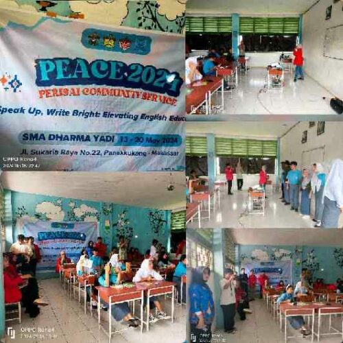TARGETNASIONAL, MAKASSAR— Perhimpunan Mahasiswa Sastra Inggris (Perisai Comunitas Service) Universitas Hasanuddin (Unhas) mengedukasi Siswa-Siswi SMA Dharma Yadi Belajar Bahasa Inggris Dengan Metode Belajar Menyenangkan (Fun Learning). Kamis, 2024/05/16.