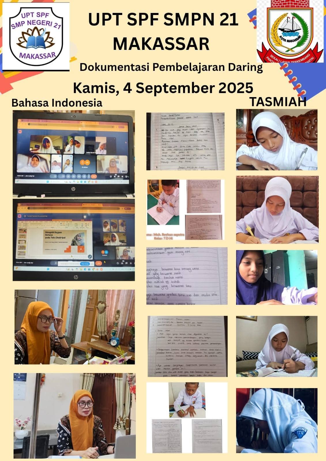 TARGETNASIONAL, MAKASSAR—- Akibat adanya aksi demo di beberapa kota besar termasuk di Kota Makassar tanggal 28-31 Agustus 2025. Kemaren. UPT SPF SMPN 21 Kecamatan Rappocini Kota Makassar, melaksanakan Kegiatan Belajar Mengajar (KBM) secara daring,